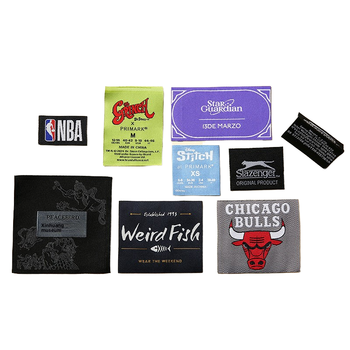 Étiquettes de vêtement tissées en polyester lavable Forme de rouleau de pli d'extrémité Logo de marque personnalisé Plusieurs modèles et options d'impression